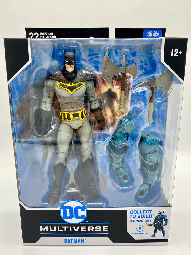 From TMP/McFarlane's Toys. These Incredibly detailed 7" scale figures are based on fan favorite comic books from the DC Multiverse! Designed with Ultra Articulation, each features up to 22 moving parts for full range of posing and play. Batman (Dark Nights: Metal) comes with two axes, a base, and 1 of 4 pieces that, when combined with the remaining pieces, will assemble the Batman of Earth -12, aka The Merciless! Includes a collectable art card with comic book cover art from Forged From Metal: The New Age of Heroes Ashcan Edition (2017) on the front, and a character biography on the back, all showcased in DC themed window box packaging! Be sure to collect a wide range of characters and fan favorites perfect for DC fans of all ages!